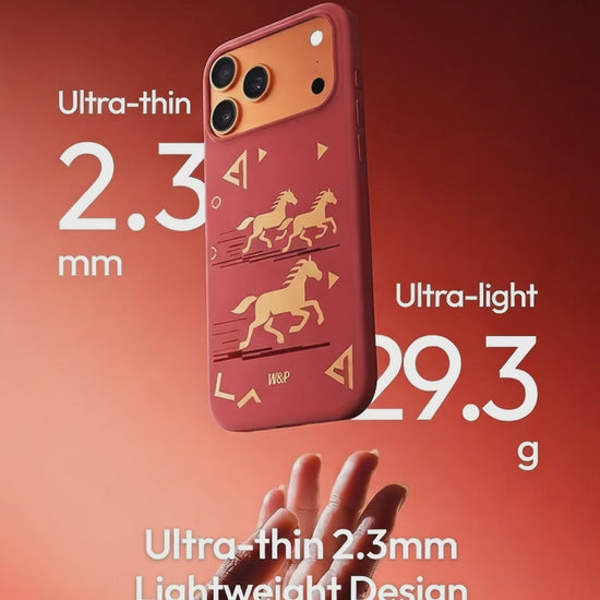Slim protection meets bold style with the W&P Year of the Horse MagSafe case. At just 2.3mm thin and 29.3g light, this iPhone 17 Series case delivers maximum defense without the weight. The minimalist design showcases stunning Year of the Horse artwork that celebrates fortune and tradition. MagSafe technology keeps accessories within reach, and the ultra-light construction means all-day comfort. Get premium protection that feels like barely anything at all.